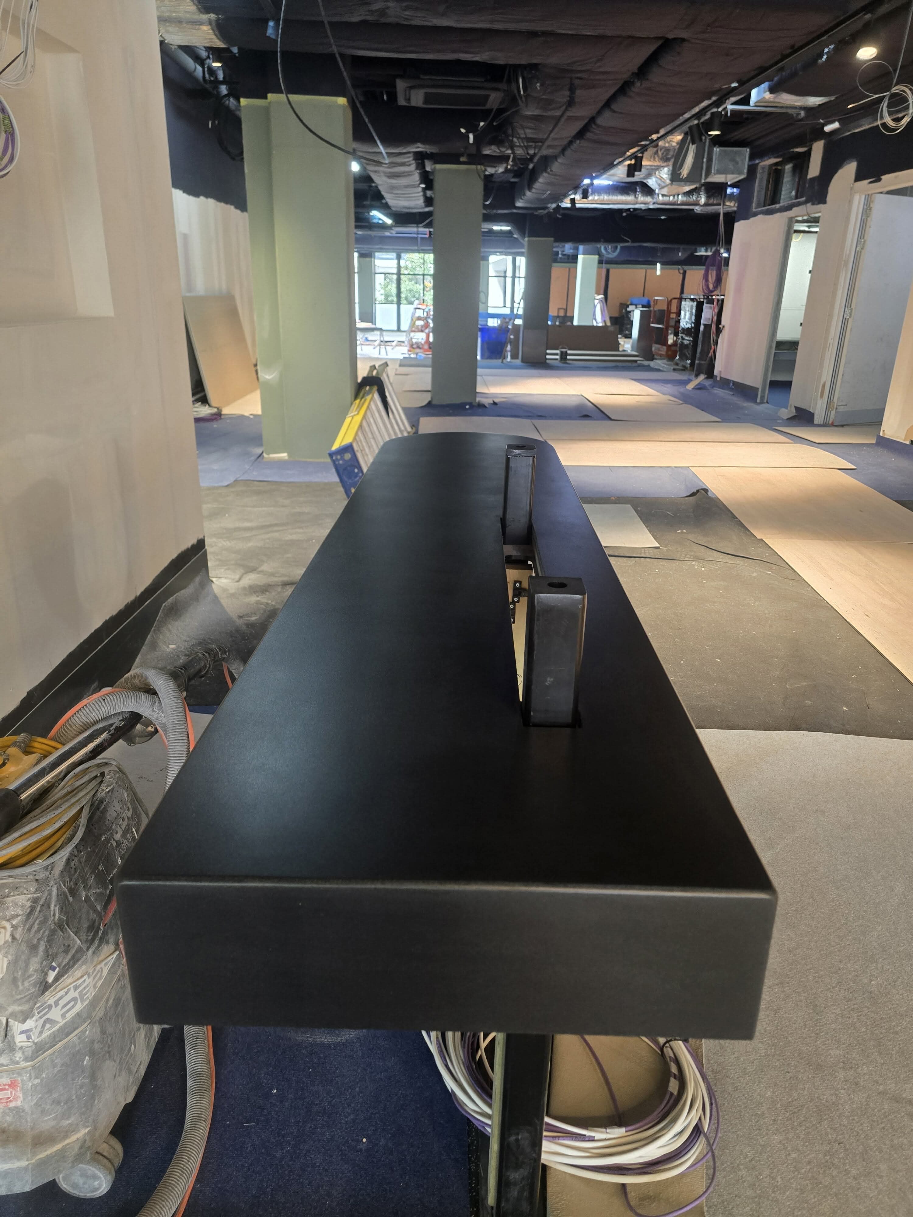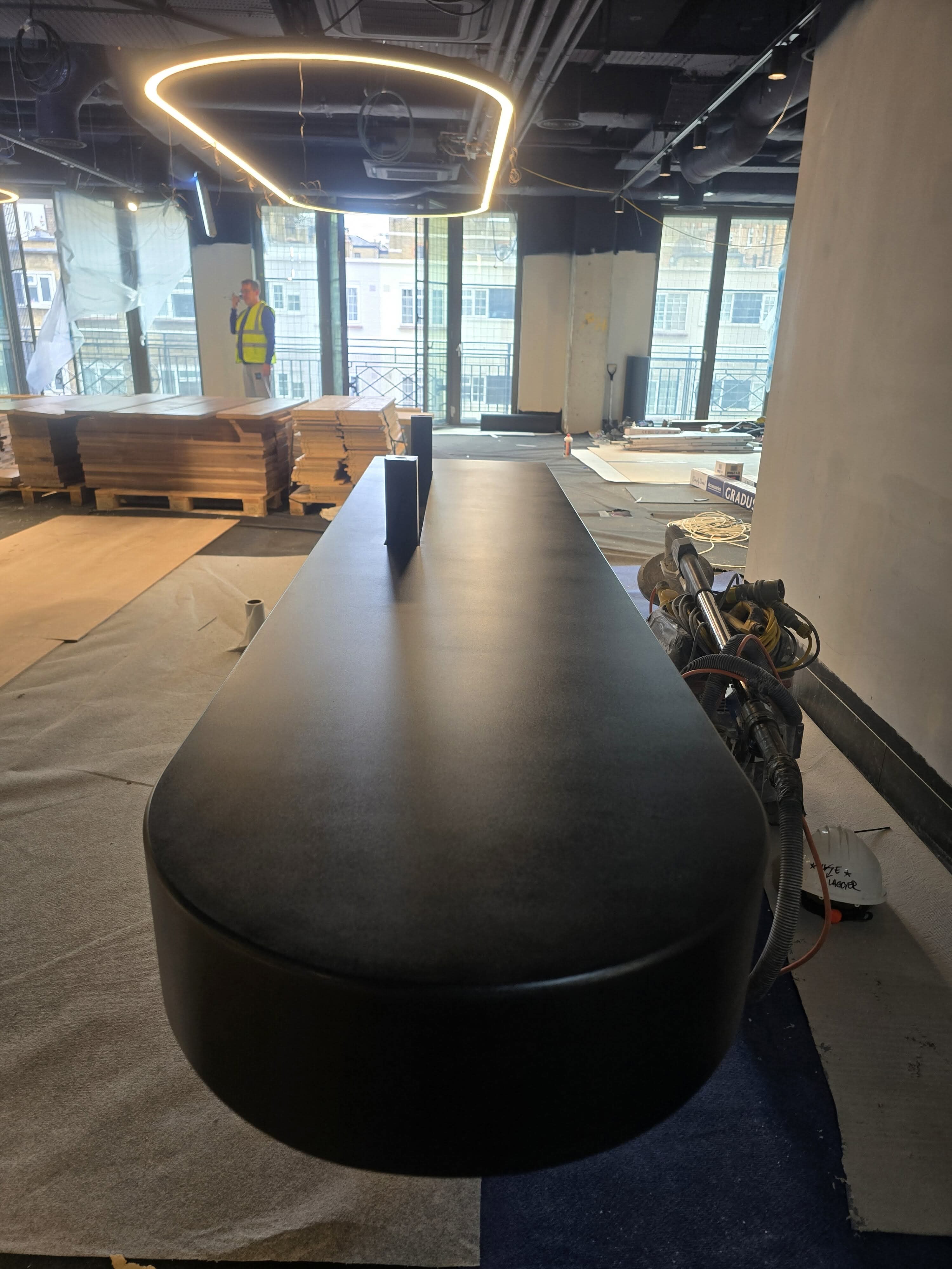 Elegant curves and bold thickness define this bespoke concrete worktop designed for a public space in London.